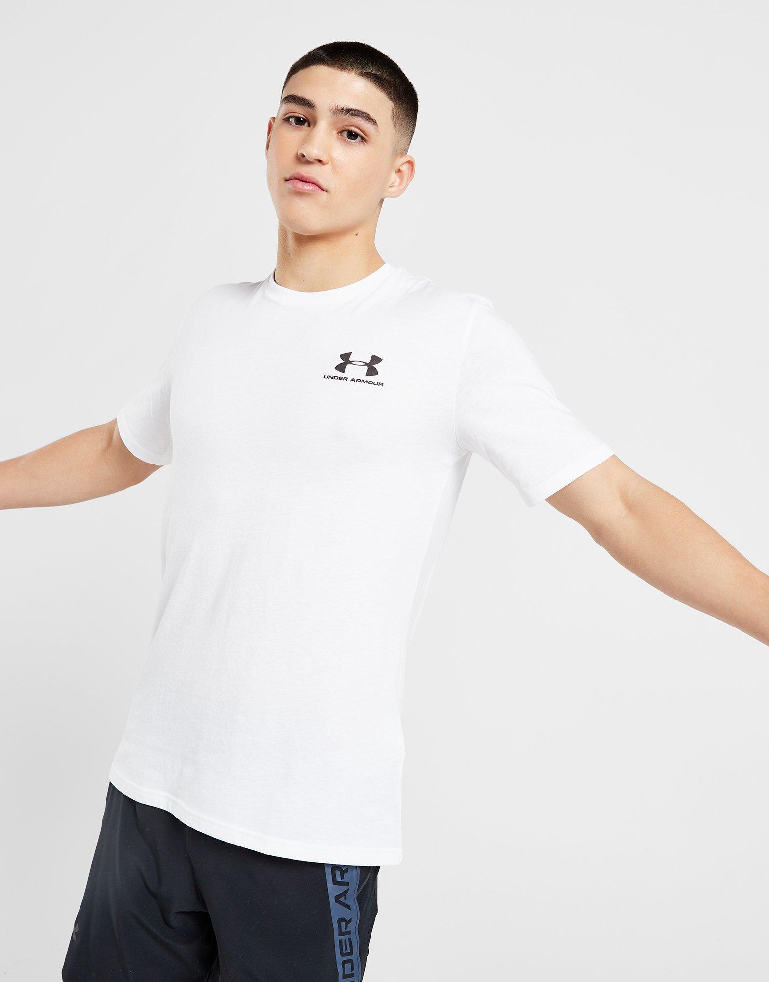 DENNE VARE ER EN DEL AF ET TILBUD, HVOR DU FÅR 2 T-SHIRTS FOR 350 KR. RABATTEN AKTIVERES AUTOMATISK, NÅR DU TILFØJER TO KAMPAGNEPRODUKTER TIL INDKØBSKURVEN. Giv din hverdagsstil et boost med denne Sportstyle Left Chest T-shirt fra Under Armour. Den kommer i en frisk hvid farve og har en standard pasform, fremstillet af glat og let polycotton-stof, som føles let og behageligt. Med naturlig stretch og en hurtigtørrende fornemmelse har den en ribbet rund halsudskæring og korte ærmer med et klassisk snit. Designet er rundet af med det klassiske logo fra Under Armour på brystet. Kan maskinvaskes.